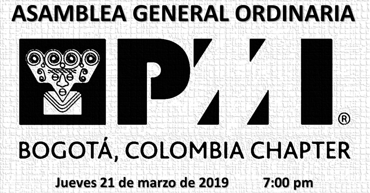 El PMI Bogotá, Colombia Chapter tiene el gusto de invitar a todos sus miembros a la Asamblea General Ordinaria, que tendrá lugar en el salón Pegaso del Hotel Cosmos 100.