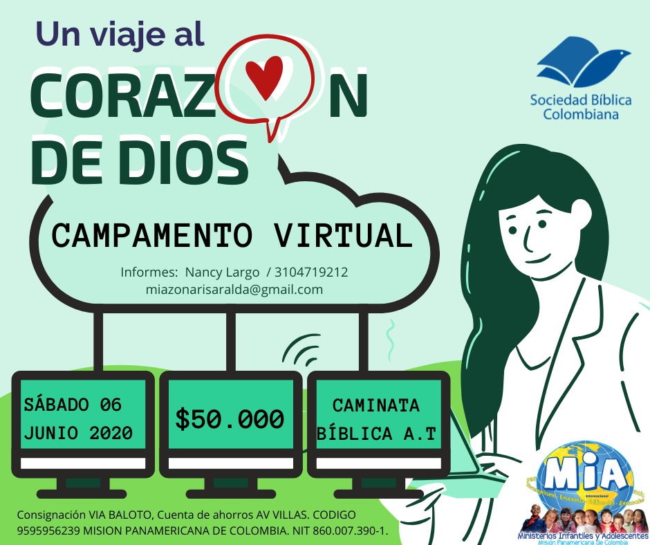 LA “ CAMINATA BÍBLICA” será dirigida por Adriana Tapias, representante de Sociedad Bíblica Colombiana. La cual dirigirá con la metodología necesaria para recibir todo el contenido propuesto. Será divertido y participativo.