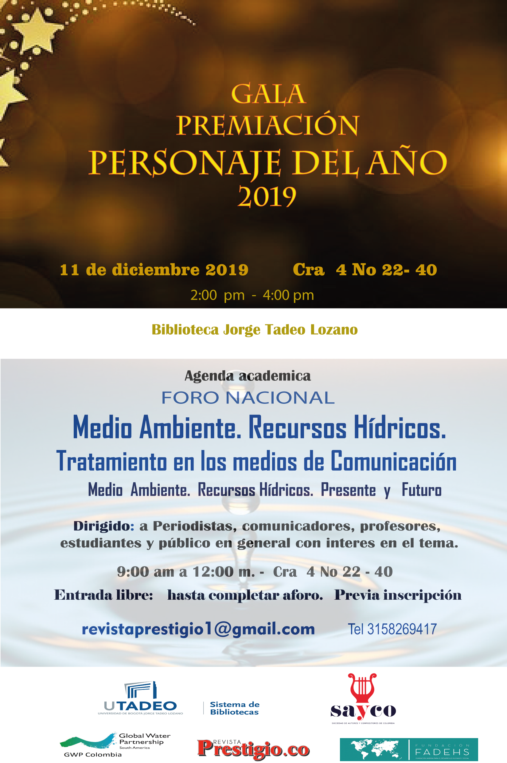2:00 p.m. - 4:30 p.m. Gala de premiación: El Personaje del Año 2019.