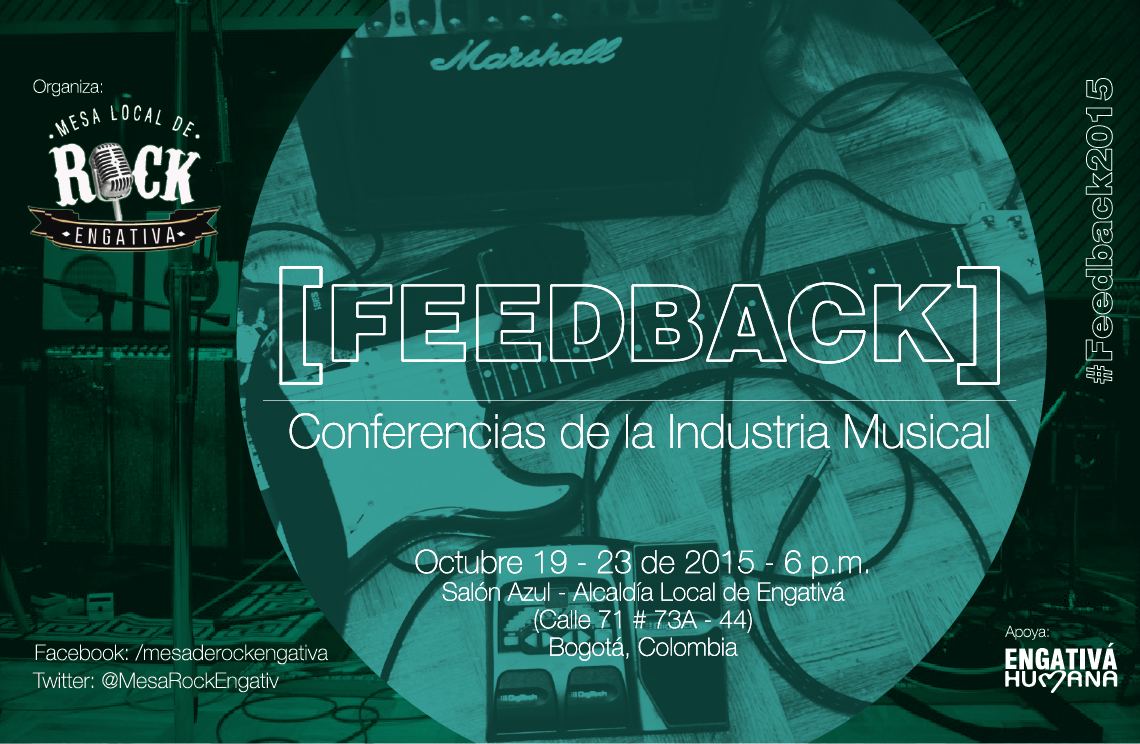 La Mesa Local de Rock de Engativá con el apoyo de la Alcaldía Local de Engativá* , pensando en la importancia de estos espacios presenta: FEEDBACK – CONFERENCIAS DE LA INDUSTRIA MUSICAL, un ciclo de conferencias dedicado a cada una de las partes de la escena musical emergente y con trayectoria, como espacio de formación y conocimiento que fomente el crecimiento profesional del medio brindando herramientas que contribuyan con el desarrollo de propuestas musicales desde el ámbito local proyectadas a nivel nacional con visión internacional.