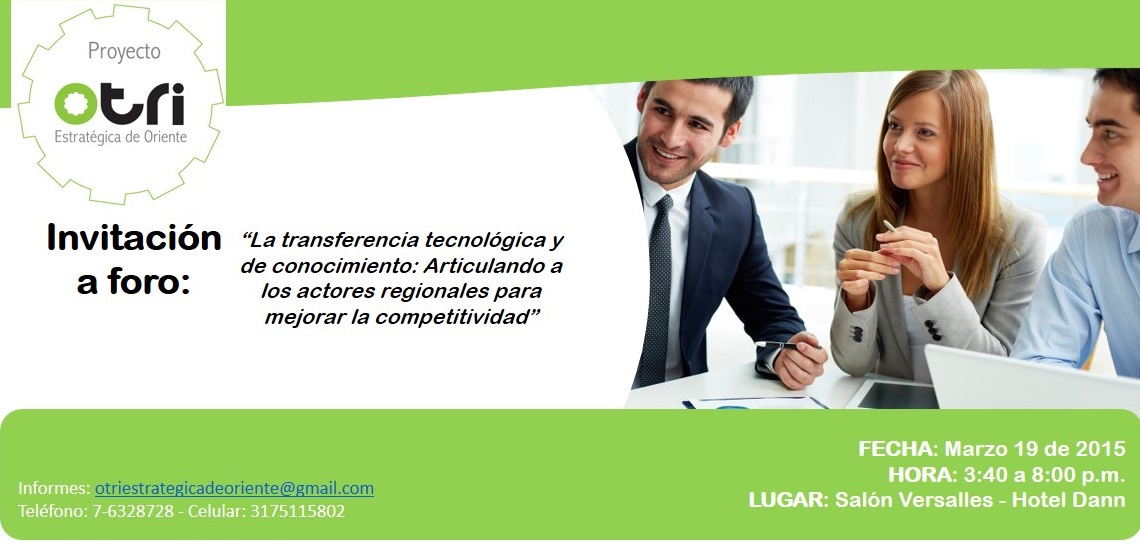 Este foro tiene como finalidad dar a conocer las interpretaciones sobre transferencia tecnológica desde diferentes actores del ecosistema de la innovación en Santander y su importancia en el desarrollo competitivo regional