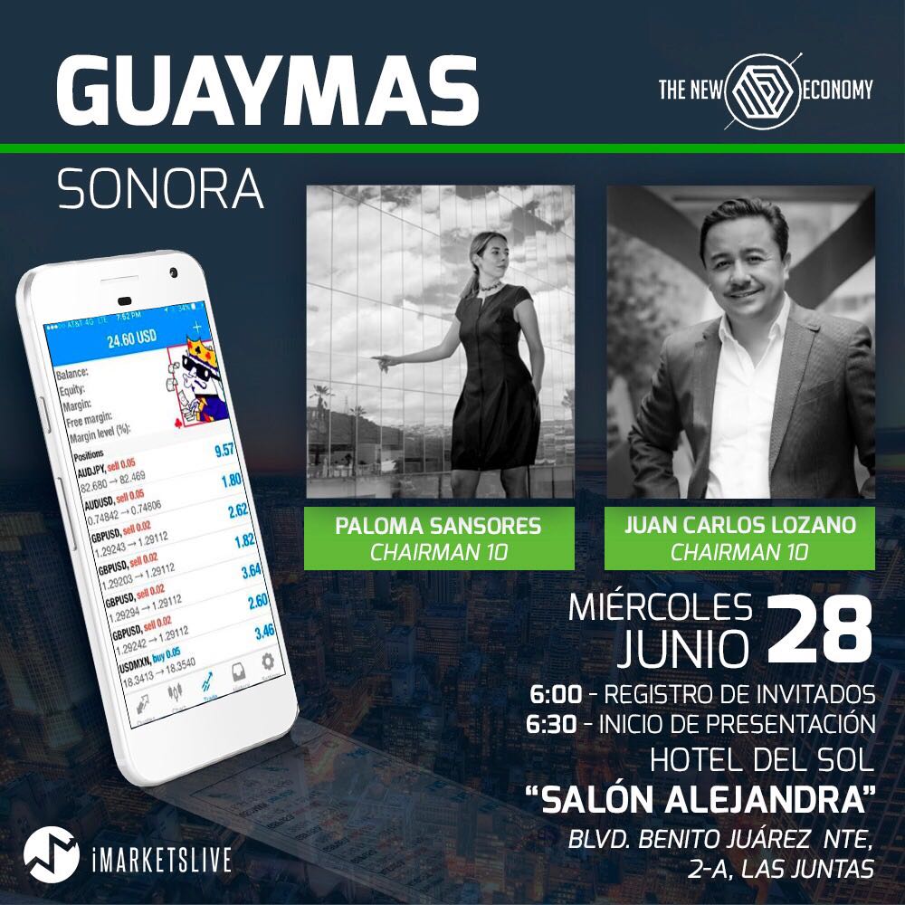 Por primera vez en Guaymas estará Juan Carlos Lozano, empresario, que ha logrado cheques de seis cifras hecho a sí mismo (no heredó fortunas ni muchos menos, de hecho, comenzó como empleado), y a su corta edad ha diversificado en diferentes industrias, como el café, franquicias de comida rápida, comercio de divisas, etc., y viene a compartirnos cuál es la industria que más dinero le ha generado y le ha permitido tener libertad financiera, y como tú también puedes aprovecharla. También nos acompaña Paloma Sansores, una joven de 29 años que ha formado equipos de más de 5,000 personas activas en su equipo.