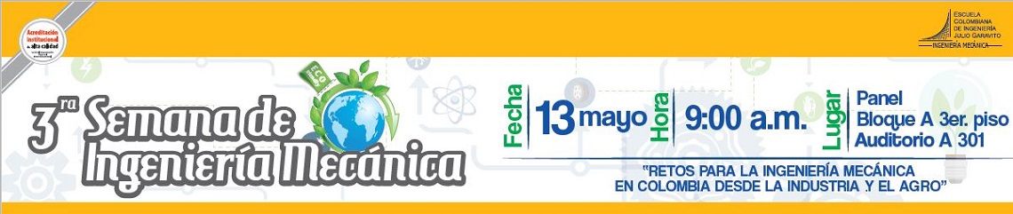 El Programa de Ingeniería Mecánica realizará el 13 de mayo de 9:00 a.m. a 5:00 p.m. en el Salón A-301 la “III Semana de Ingeniería Mecánica”, que busca integrar a la comunidad académica de este Programa, para motivar y despertar en los futuros profesionales la responsabilidad social, el compromiso, la ética y el espíritu emprendedor. Así mismo, pretende facilitar información actualizada y acorde con las necesidades a las que se verán enfrentados los estudiantes y futuros graduados del Programa, fomentando la investigación y la participación en diferentes actividades y así, generar conexiones entras las necesidades de la industria y la sociedad con los temas académicos.