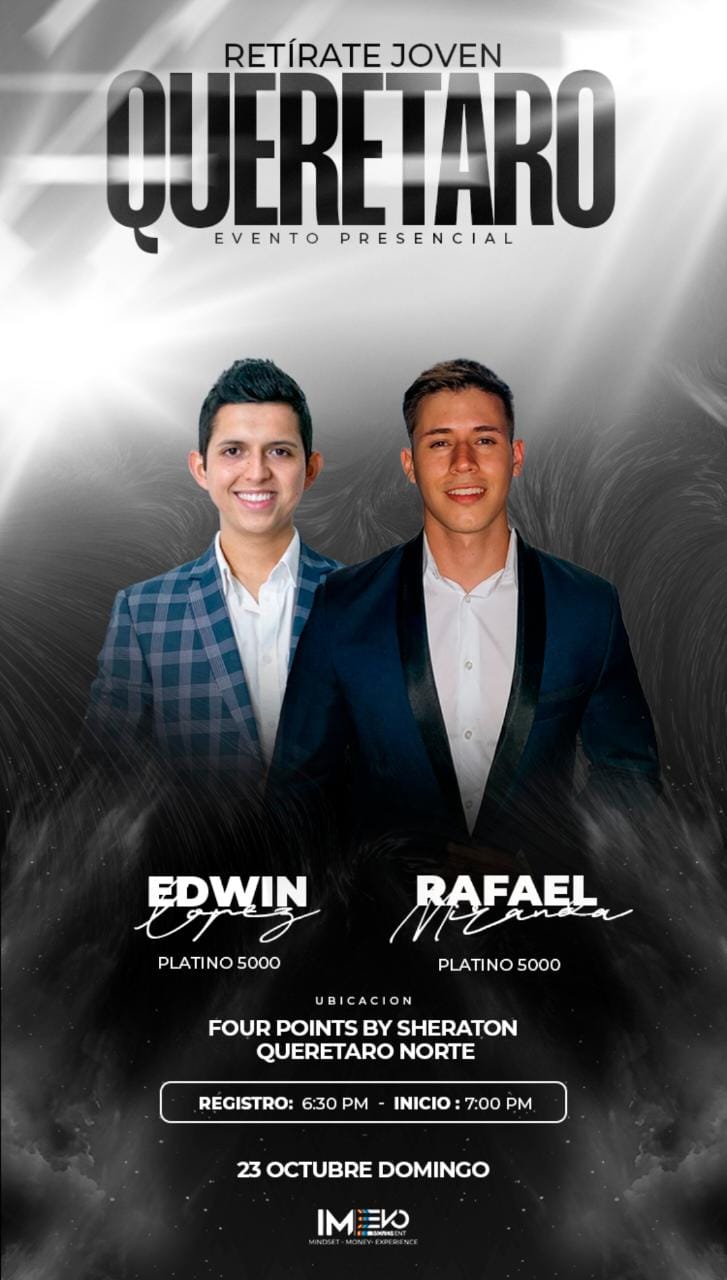 Asiste a este evento para aprender de 2 hombres que a su corta edad generan arriba de las 6 cifras y te mostraran como tener libertad financiera desde joven apalancándote de la nueva economía y era digital.