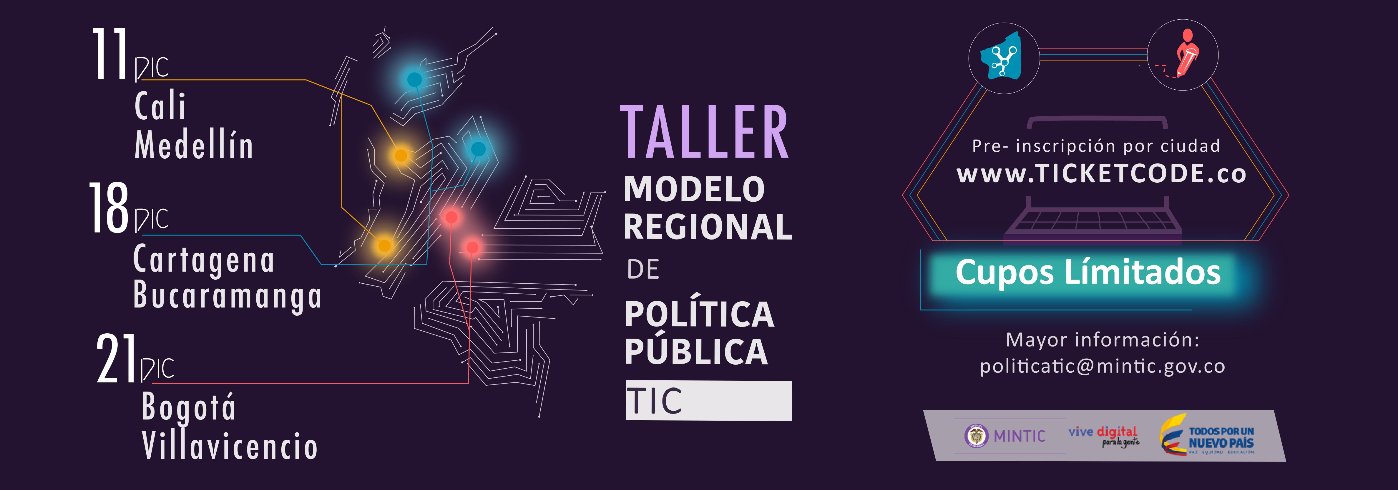 El evento 'Taller modelo regional de política pública TIC - sede MEDELLÍN' finalizó el 11-Dic-2017.